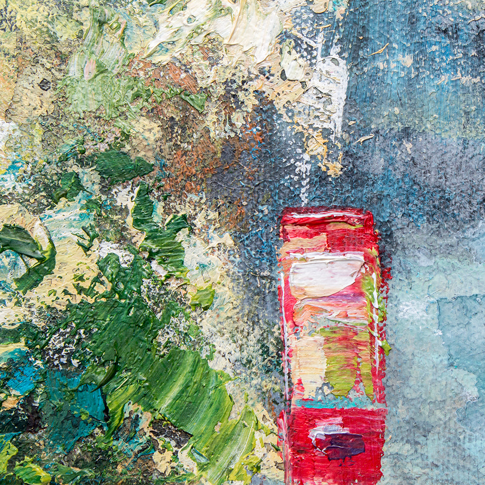 - Acrylic, oil and enamel on 50x50cm canvas with painted sides