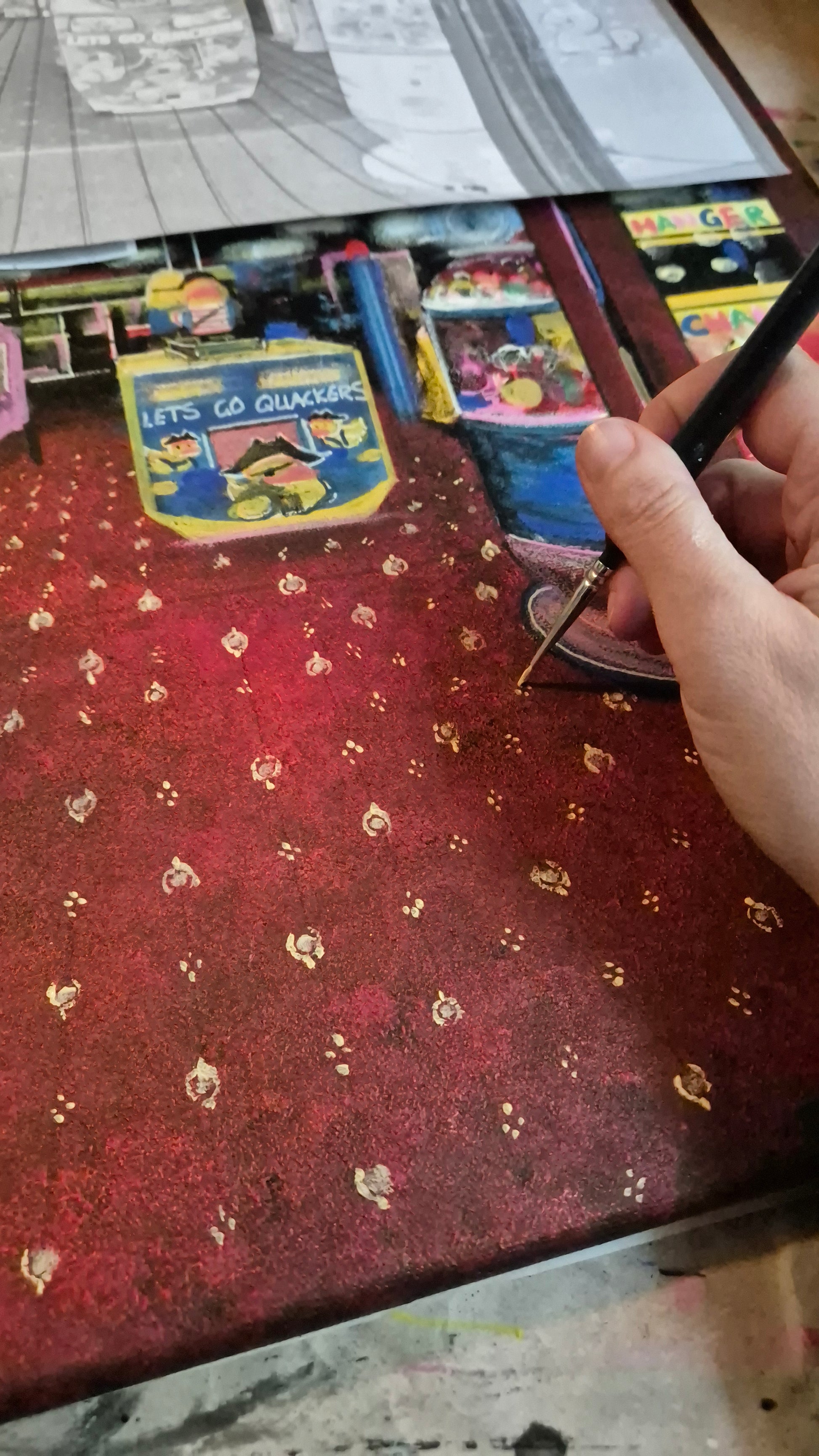 - Acrylic, oil and enamel on 50x50cm canvas with painted sides