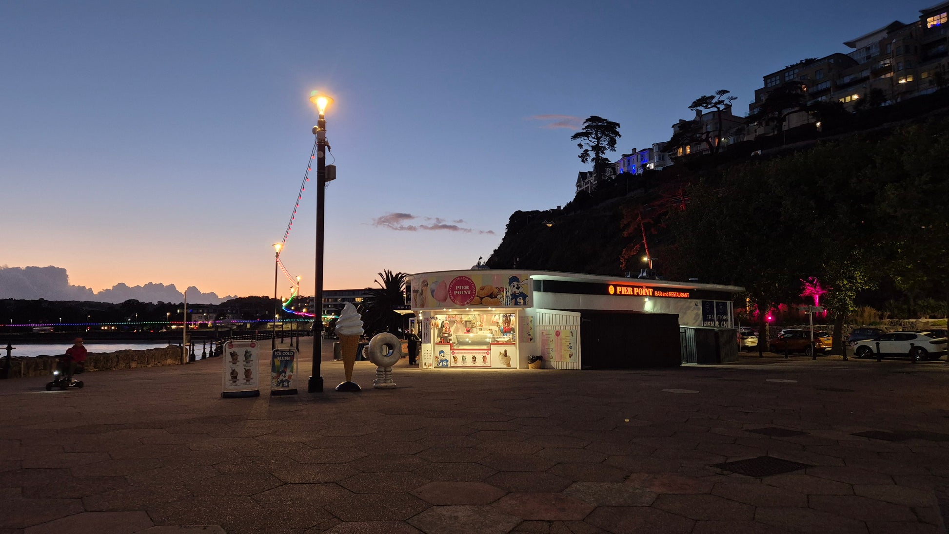 Some of you may recognise this as Torquay, with the colourful fairy lights which run around the bay and the cliffs which surround the harbour itself.