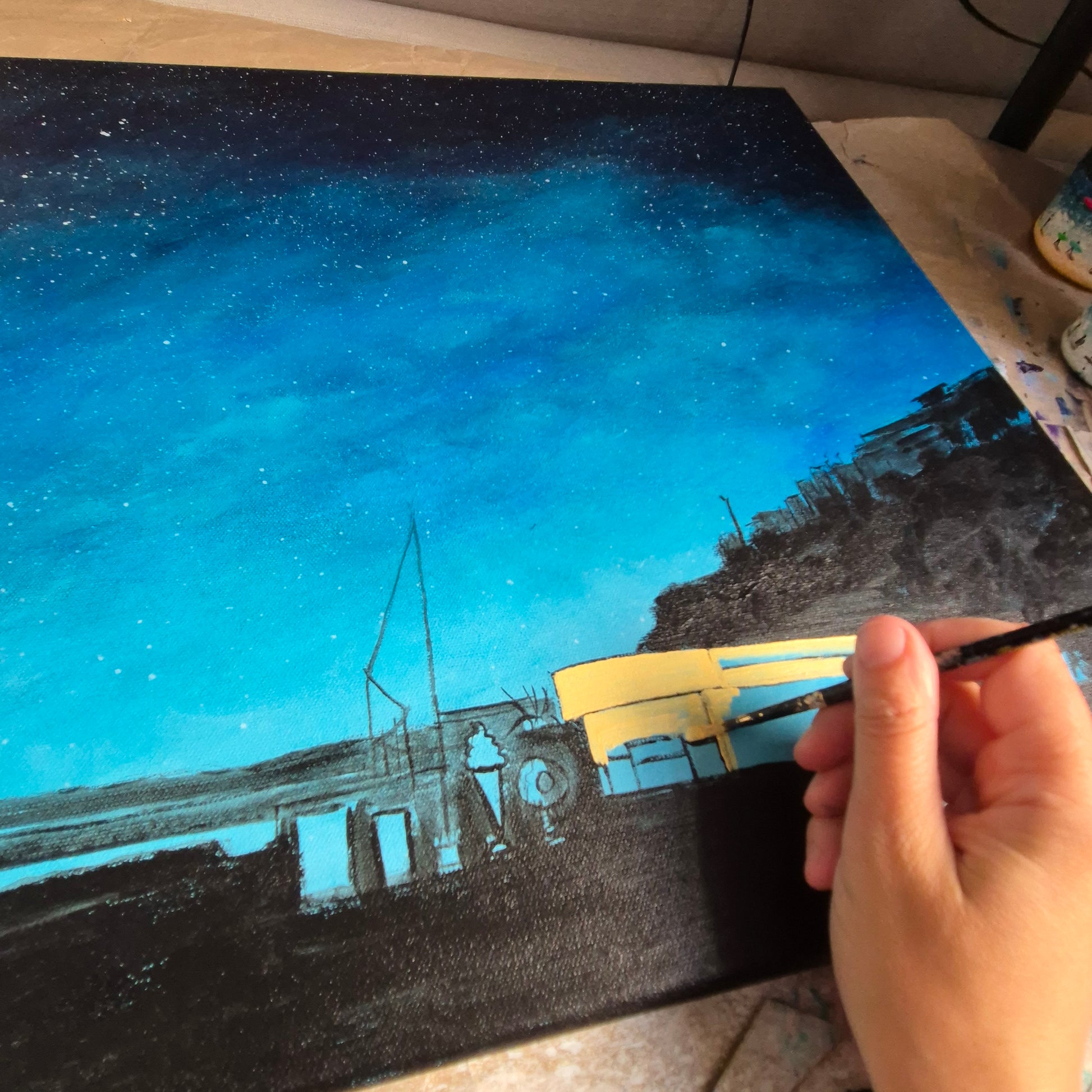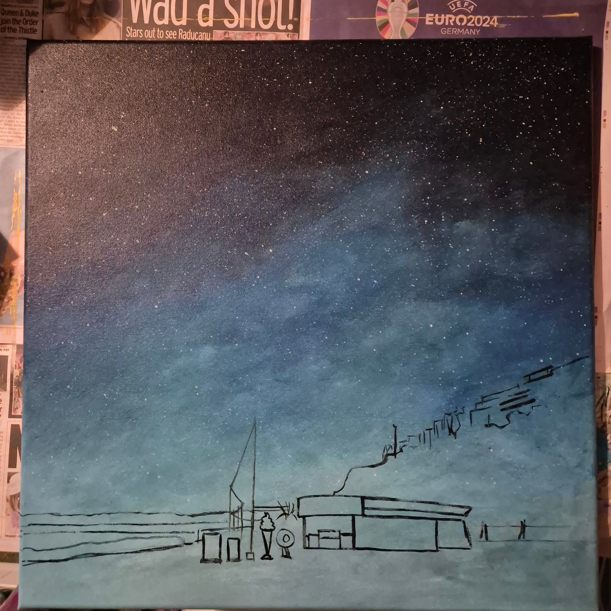 - Acrylic, oil and enamel on 50x50cm canvas with painted sides