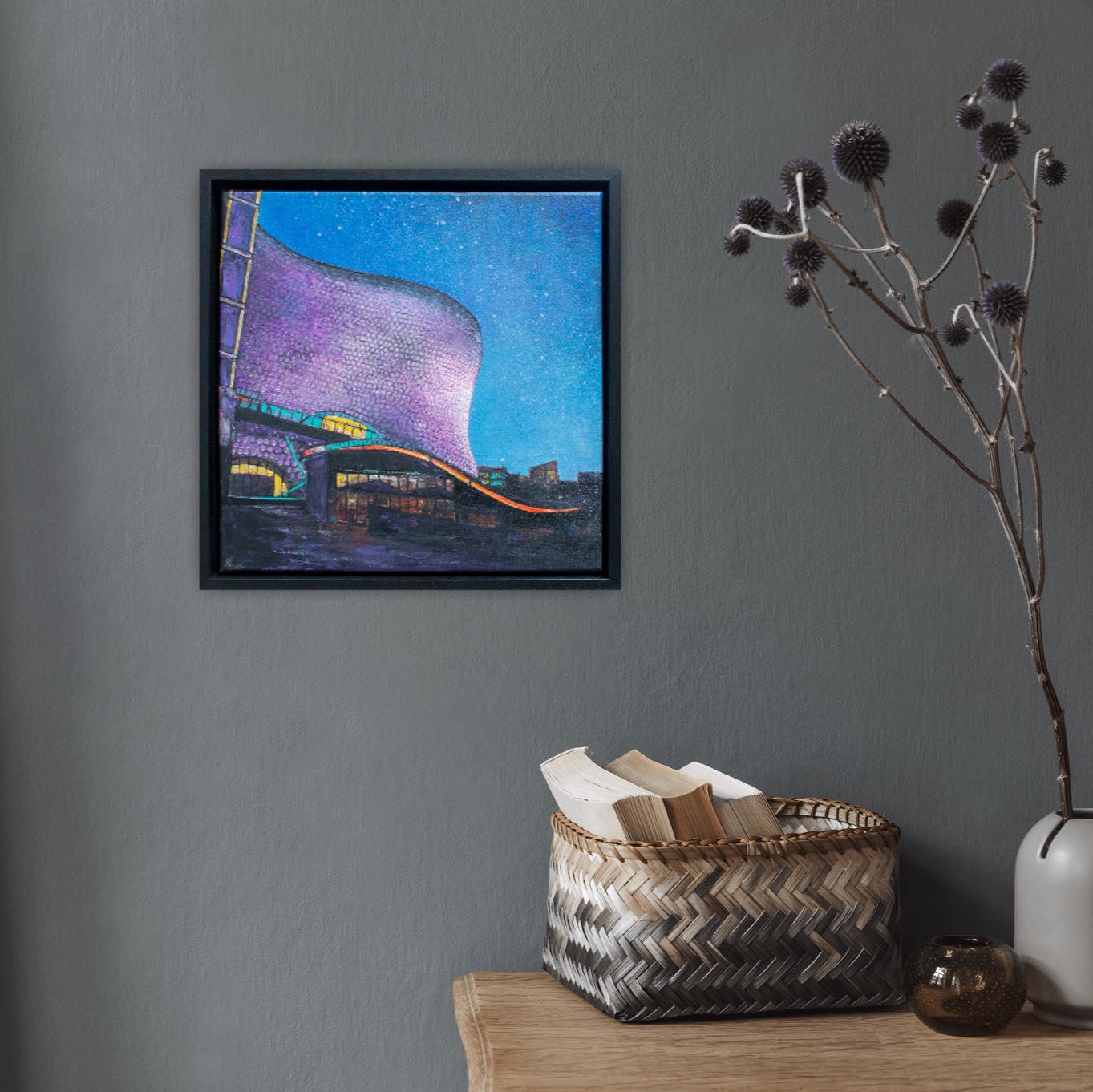 This was the photo I used as part of my inspiration for this painting. This fluidity of shape was a challenge to paint, but I had a stunning evening photo of Selfridges lit up in a purple/pink and really wanted this view to add to my collection of paintings ‘The Colour of Night’. A collection which explores how natural and man-made light can transform a landscape; Dialling up colours normally unusual to that landscape, taking advantage of light and shadow to create something magical.