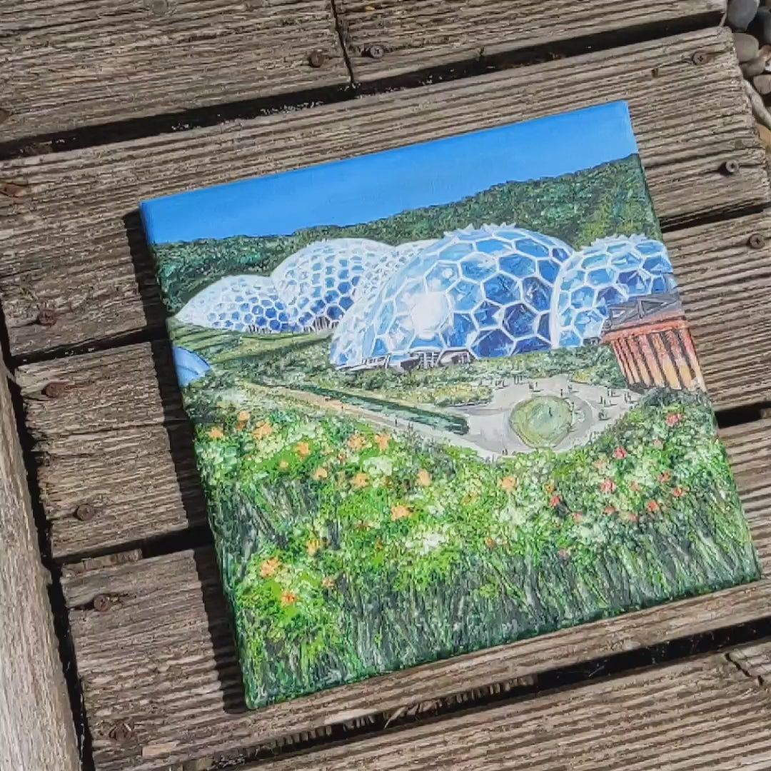 From a clay pit to paradise; The Eden Project near St Austell has so much to offer it’s hard to know where to begin. I began with the Biomes in this painting, capturing the Rainforest and Mediterranean domes side by side, a dominant part of this Cornish attraction. Everywhere you look you can see nature and beauty and I wanted this painting to have the same feel to it, looking over a wealth of foliage and flowers over to the biomes.